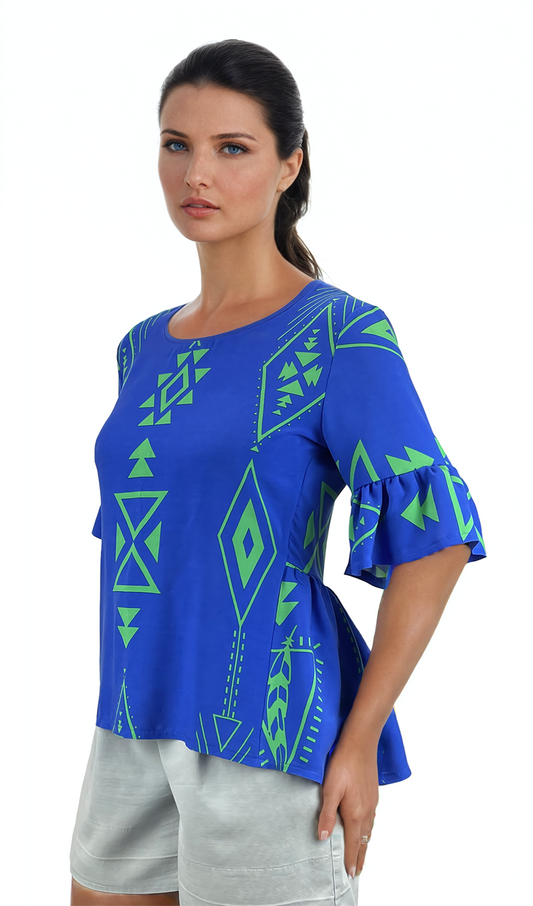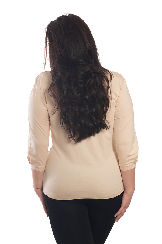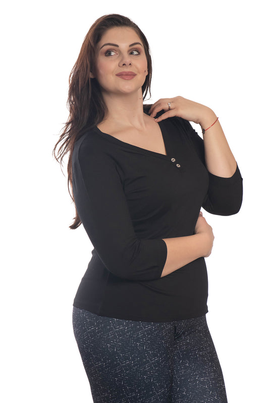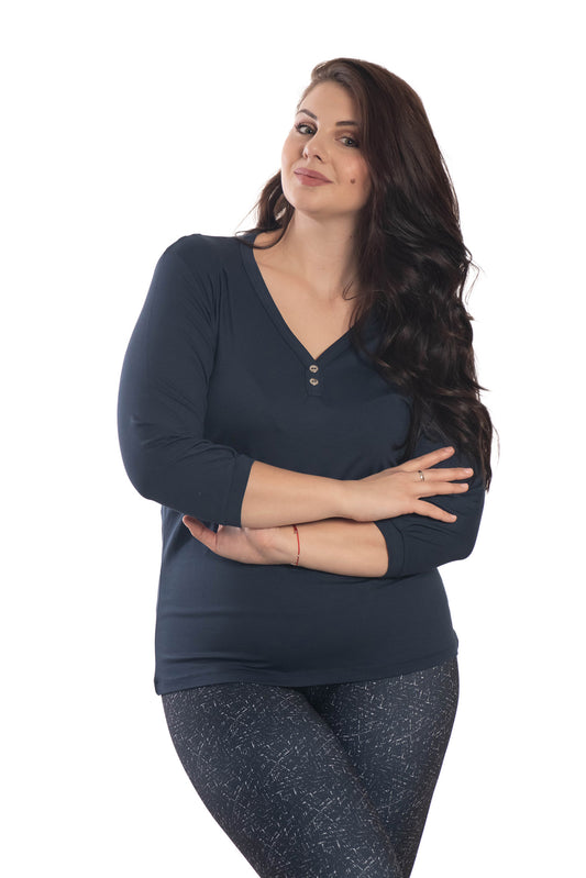 Дамска блуза - тениска с 3/4 ръкав остро деколте с две декоративни копчета за карасота