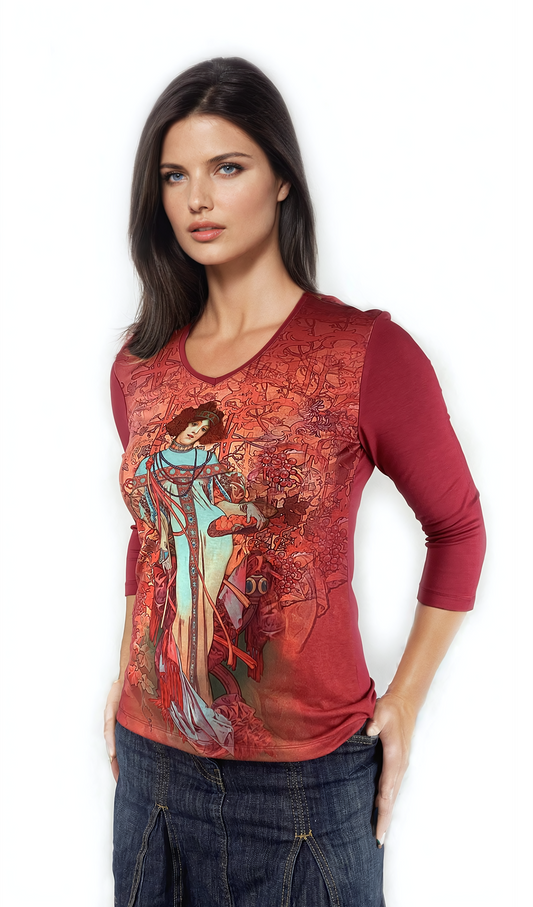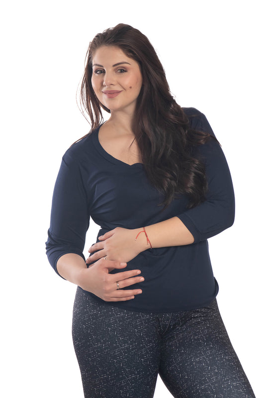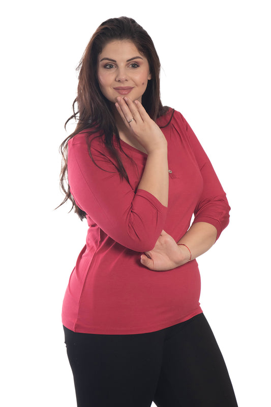 Дамска блуза - тениска с 3/4 ръкав остро деколте