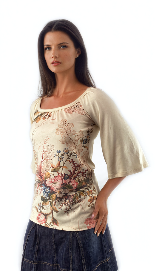 Дамска блуза - тениска с 3/4 ръкав обло деколте