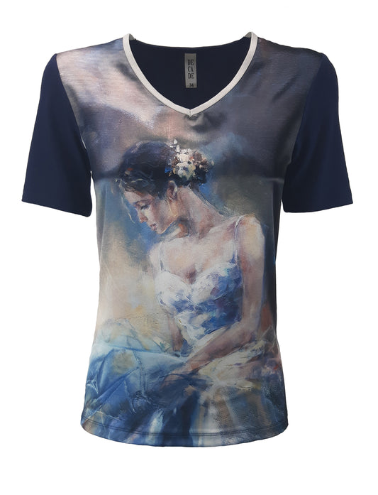 Дамска тениска с дълъг реглан-ръкав обло деколте