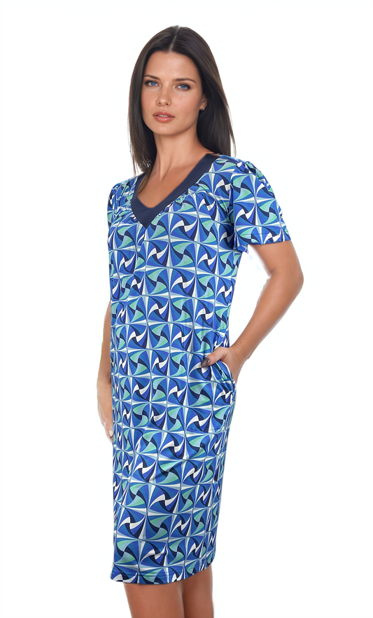 Дамска рокля с къс ръкав остро деколте