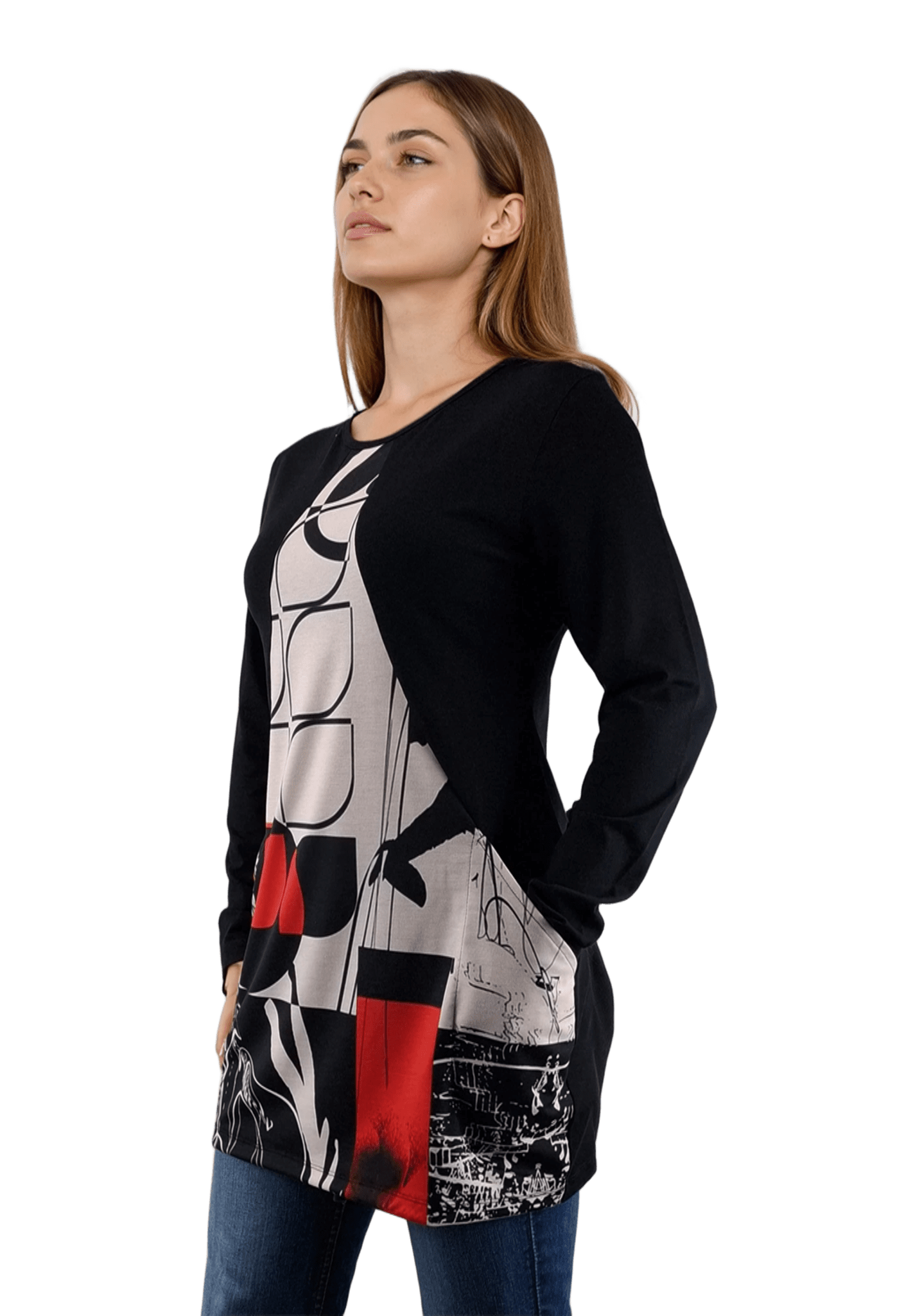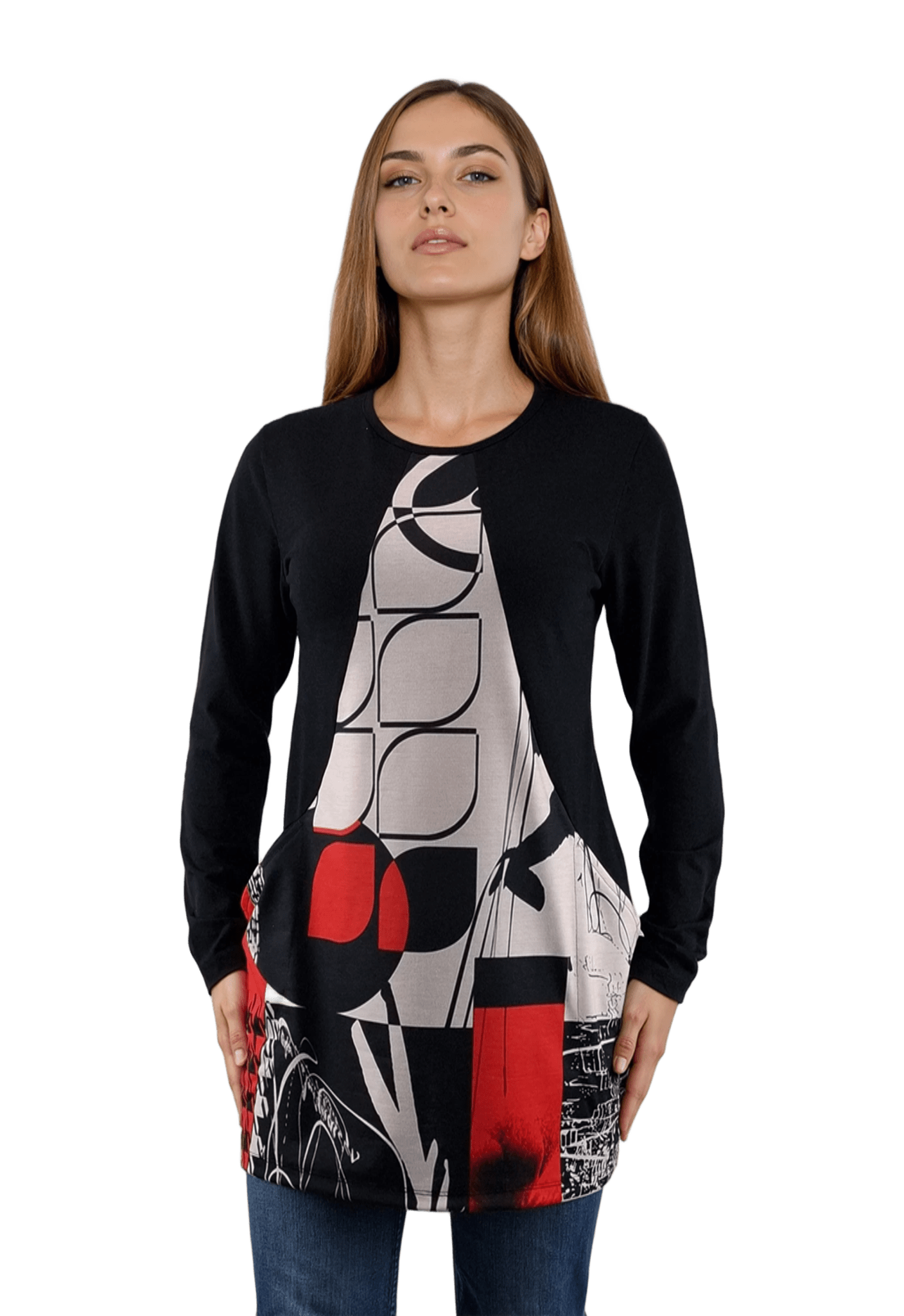 Дамска блуза-туника асиметрична с дълъг ръкав обло деколте
