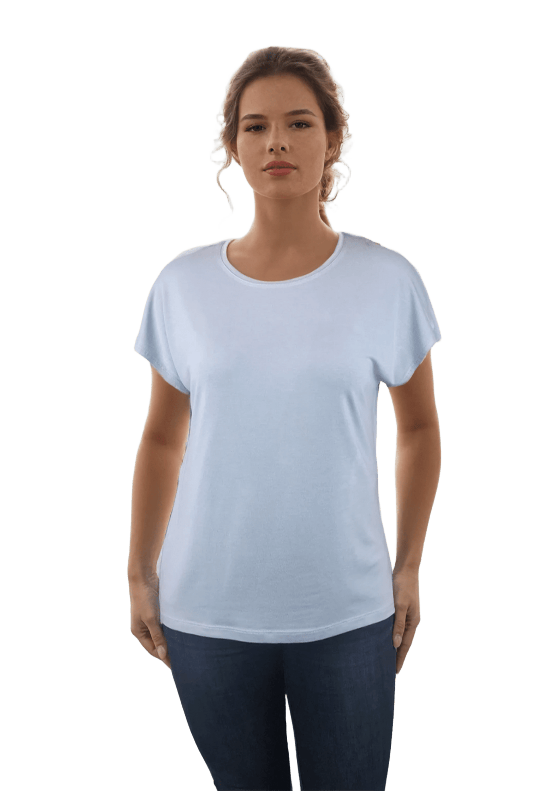 - Дамска блуза - тениска с къс ръкав обло деколте добра основа за всякa визия.