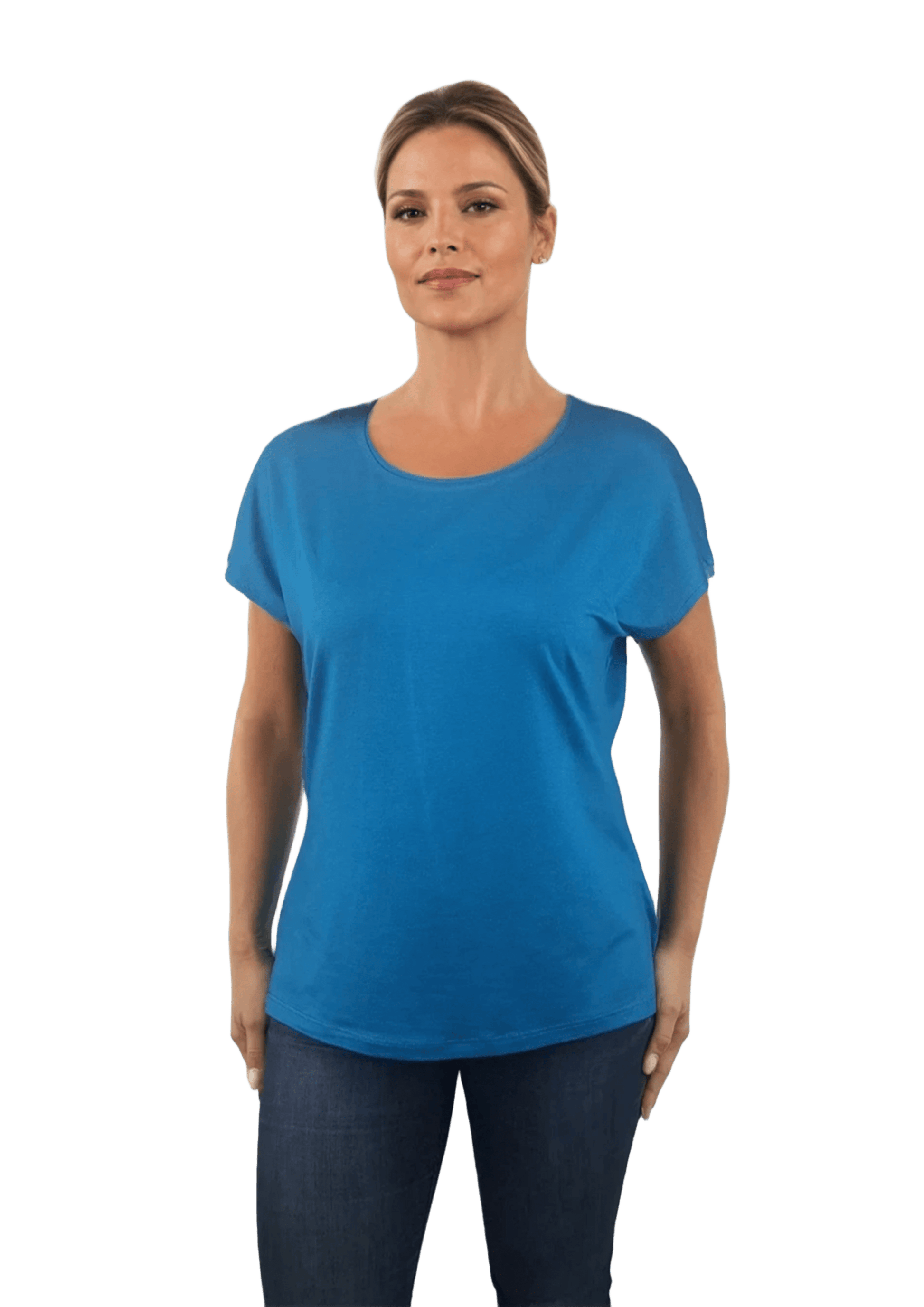 - Дамска блуза - тениска с къс ръкав обло деколте добра основа за всякa визия.