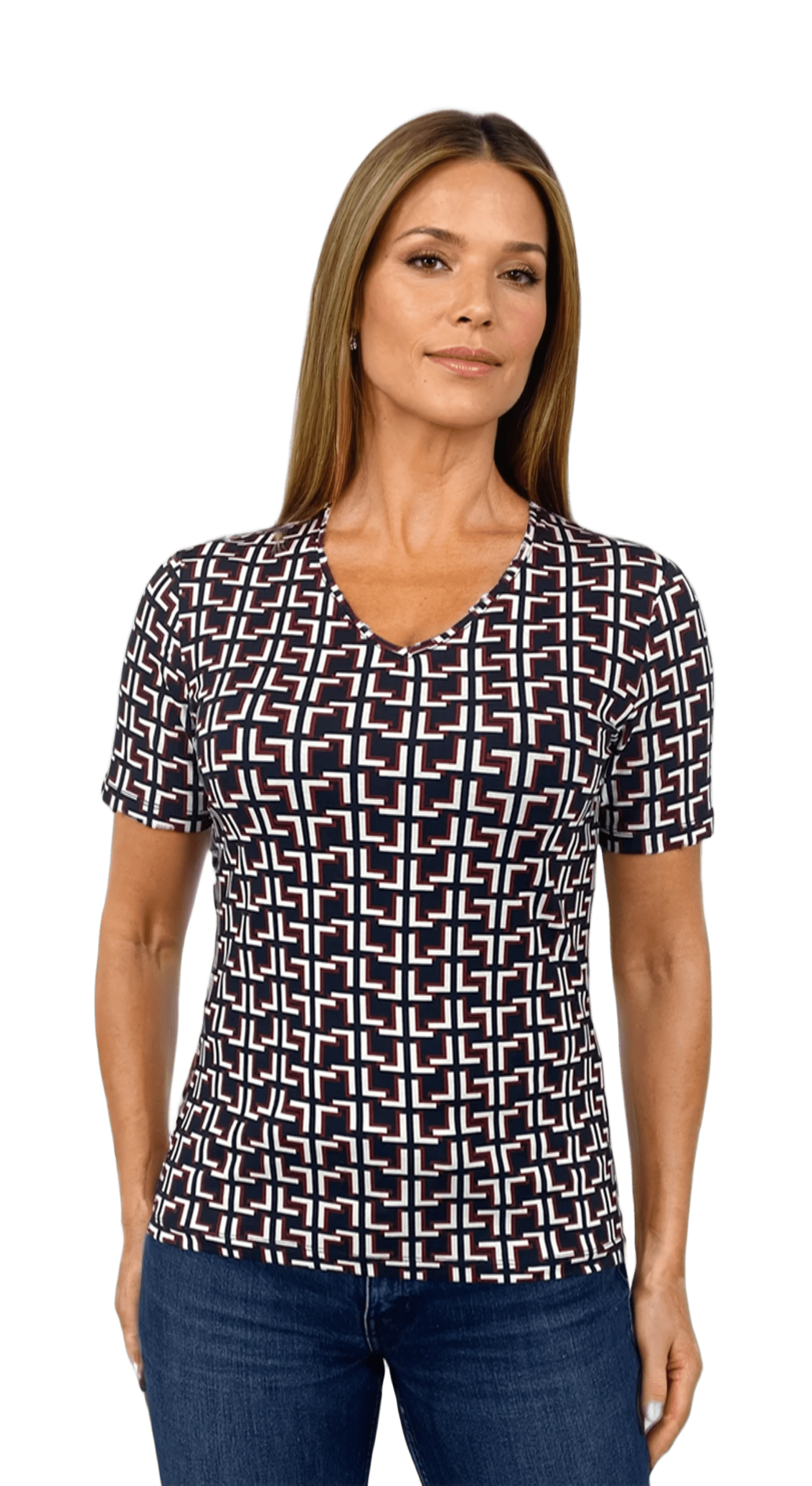 - Дамска блуза - тениска с къс ръкав остро деколте добра основа за всякa визия.