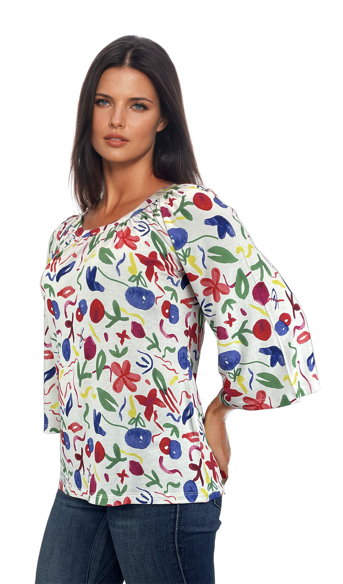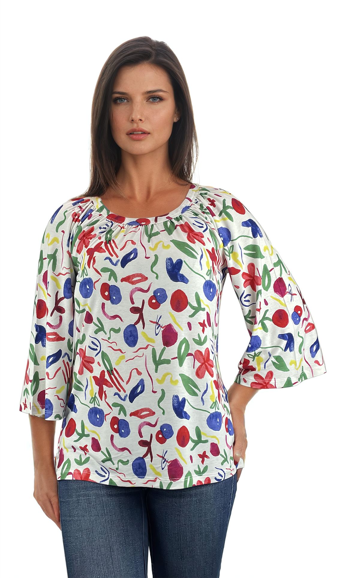 - Дамска блуза - тениска с 3/4 ръкав обло деколте добра основа за всякa визия.