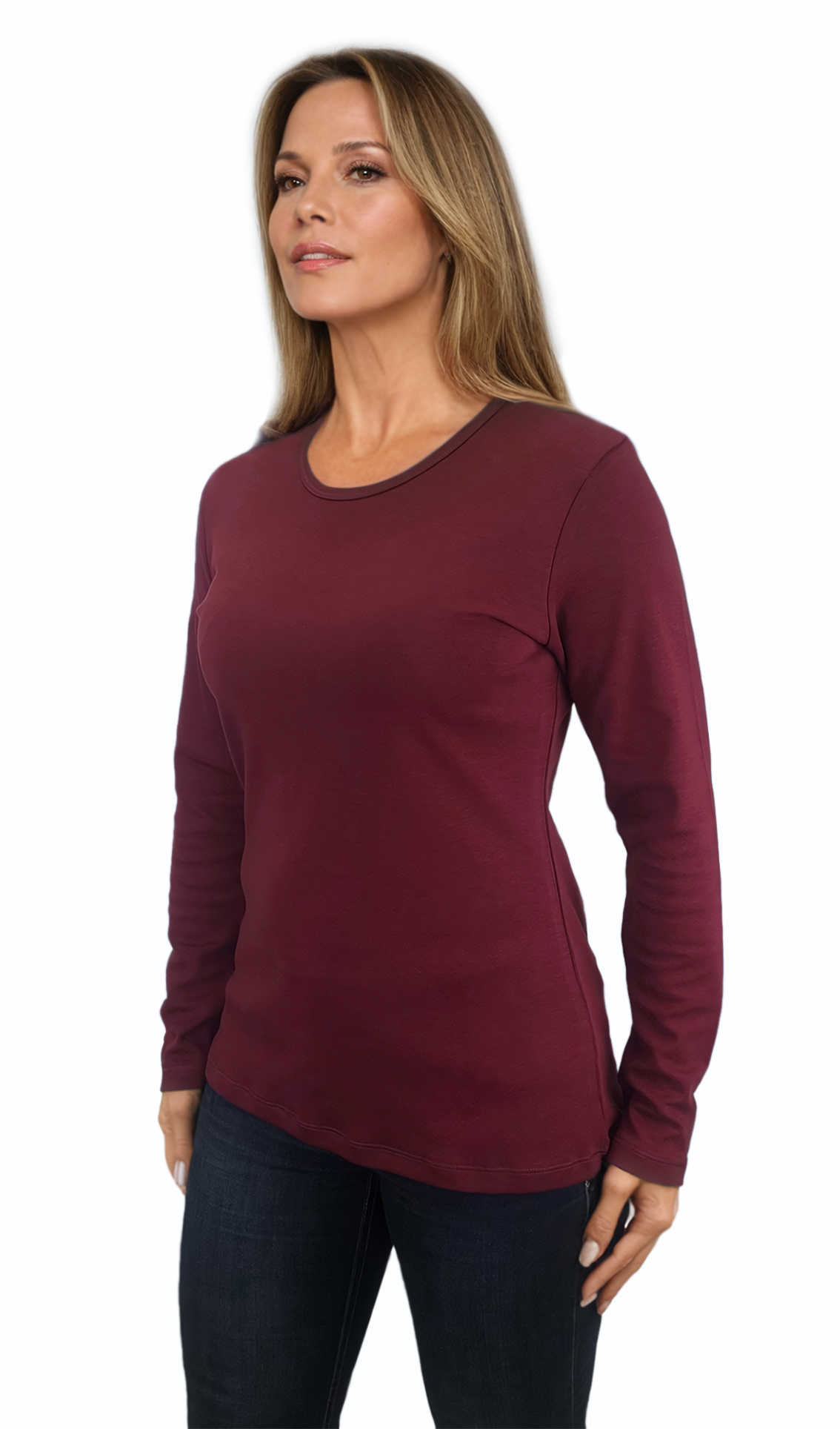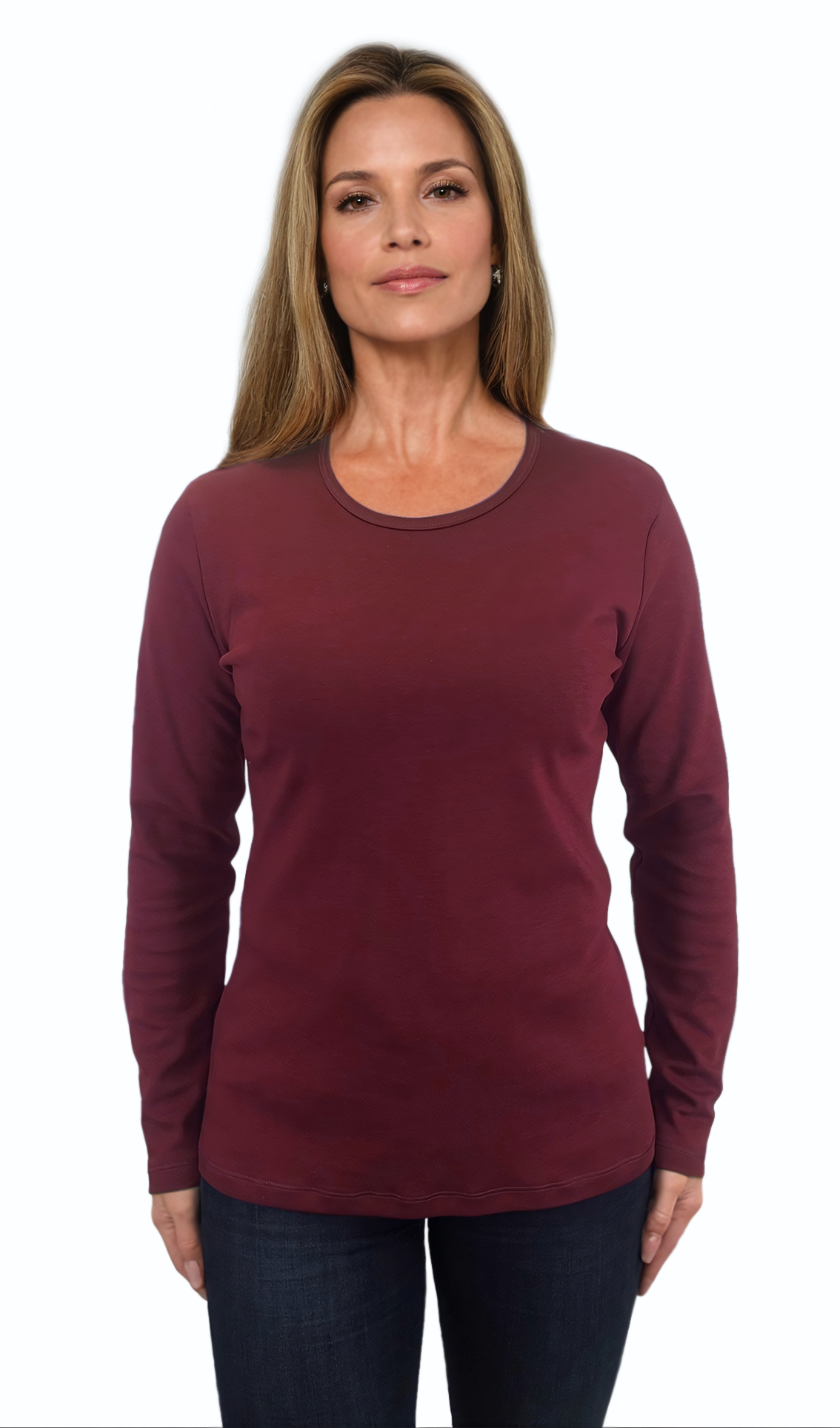 - Дамска блуза - тениска с дълъг ръкав обло деколте добра основа за всякa визия.