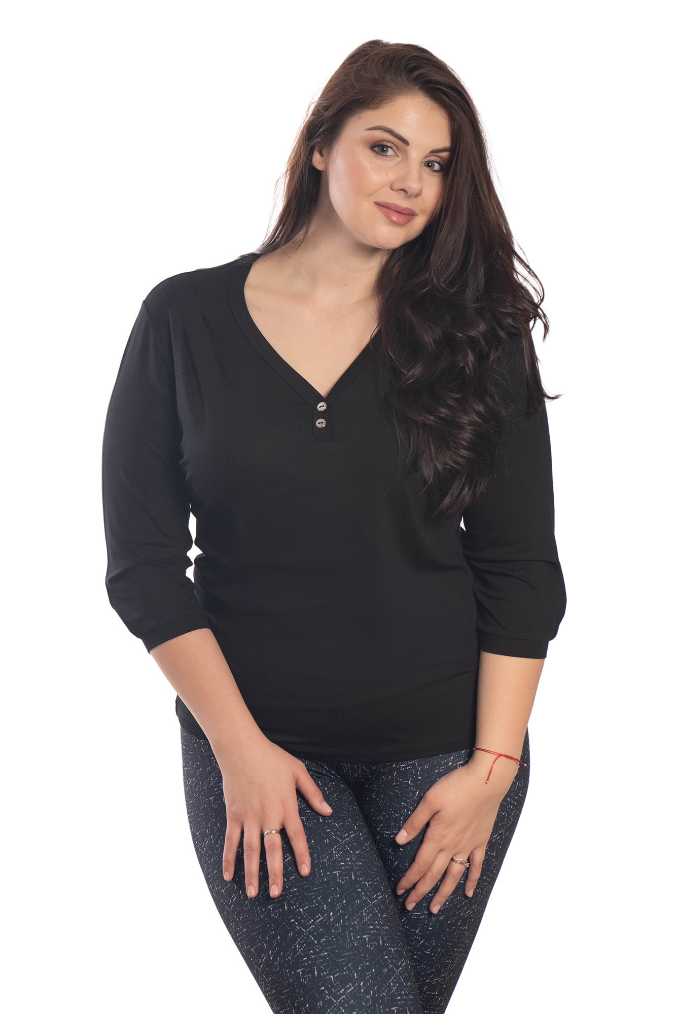 Дамска блуза - тениска с 3/4 ръкав остро деколте с две декоративни копчета за карасота