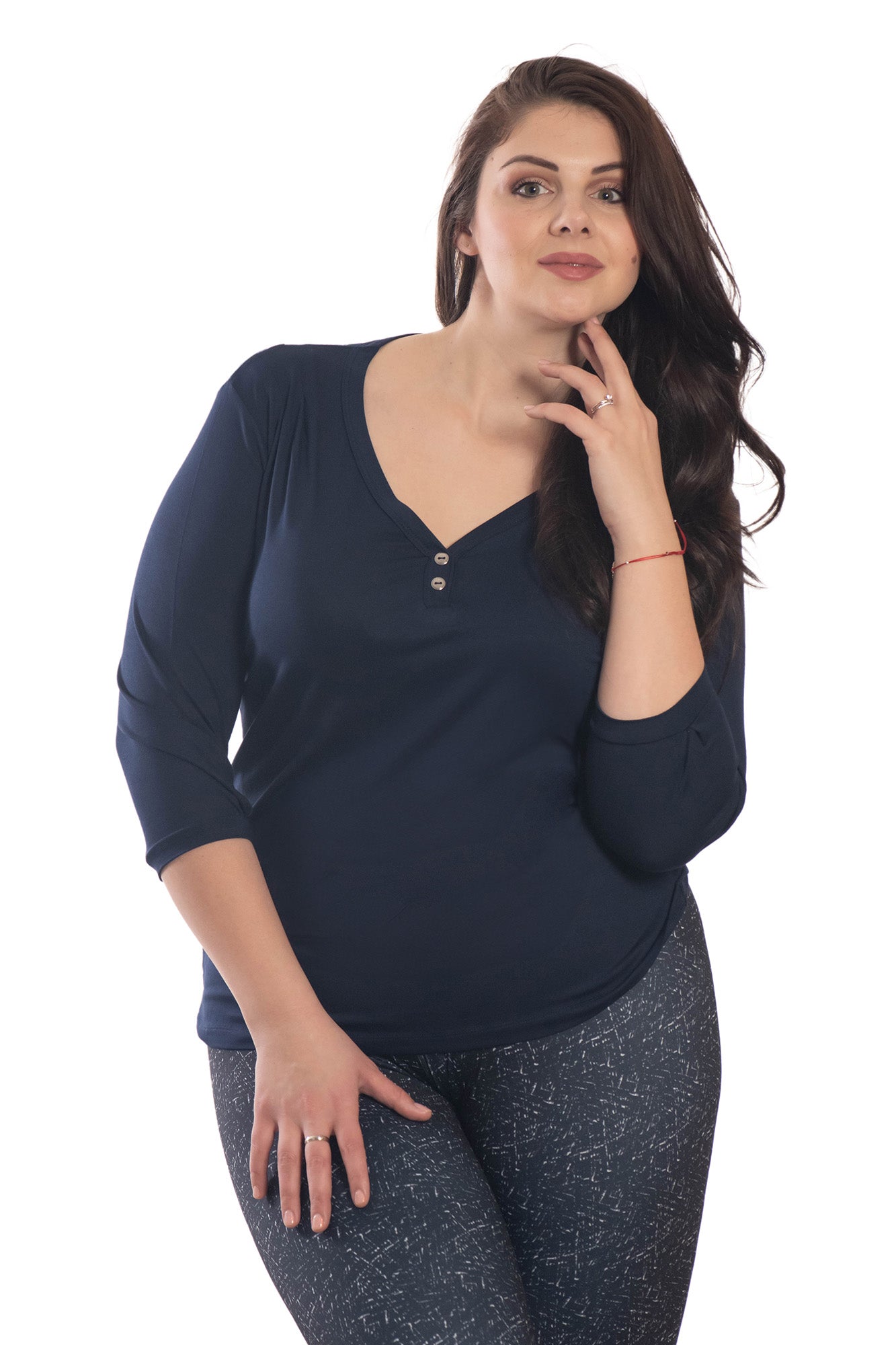 - Дамска блуза - тениска с 3/4 ръкав остро деколте с две декоративни копчета за карасота.