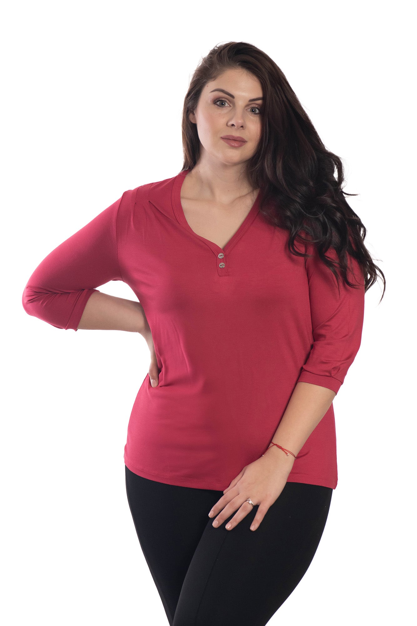- Дамска блуза - тениска с 3/4 ръкав остро деколте с две декоративни копчета за карасота.