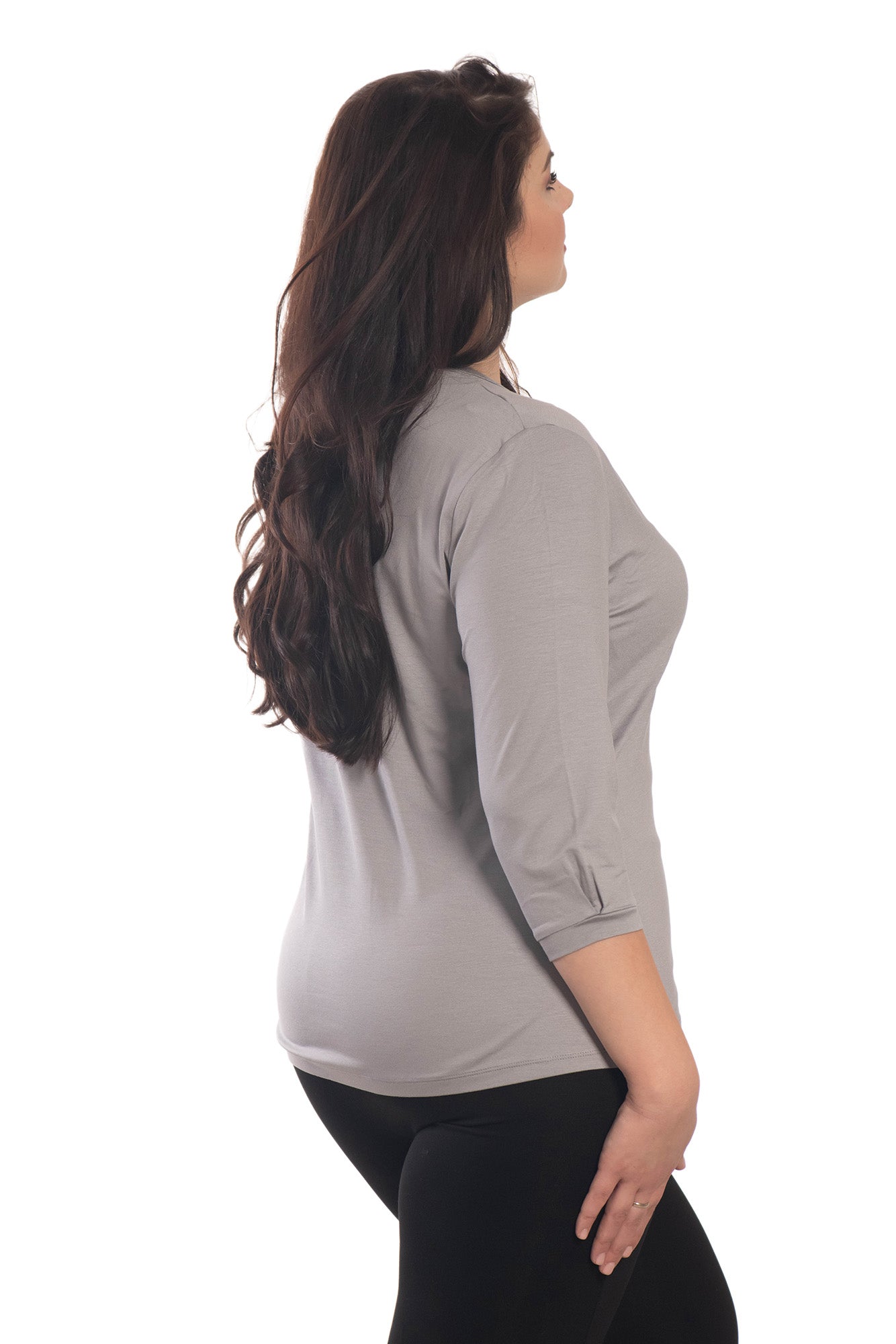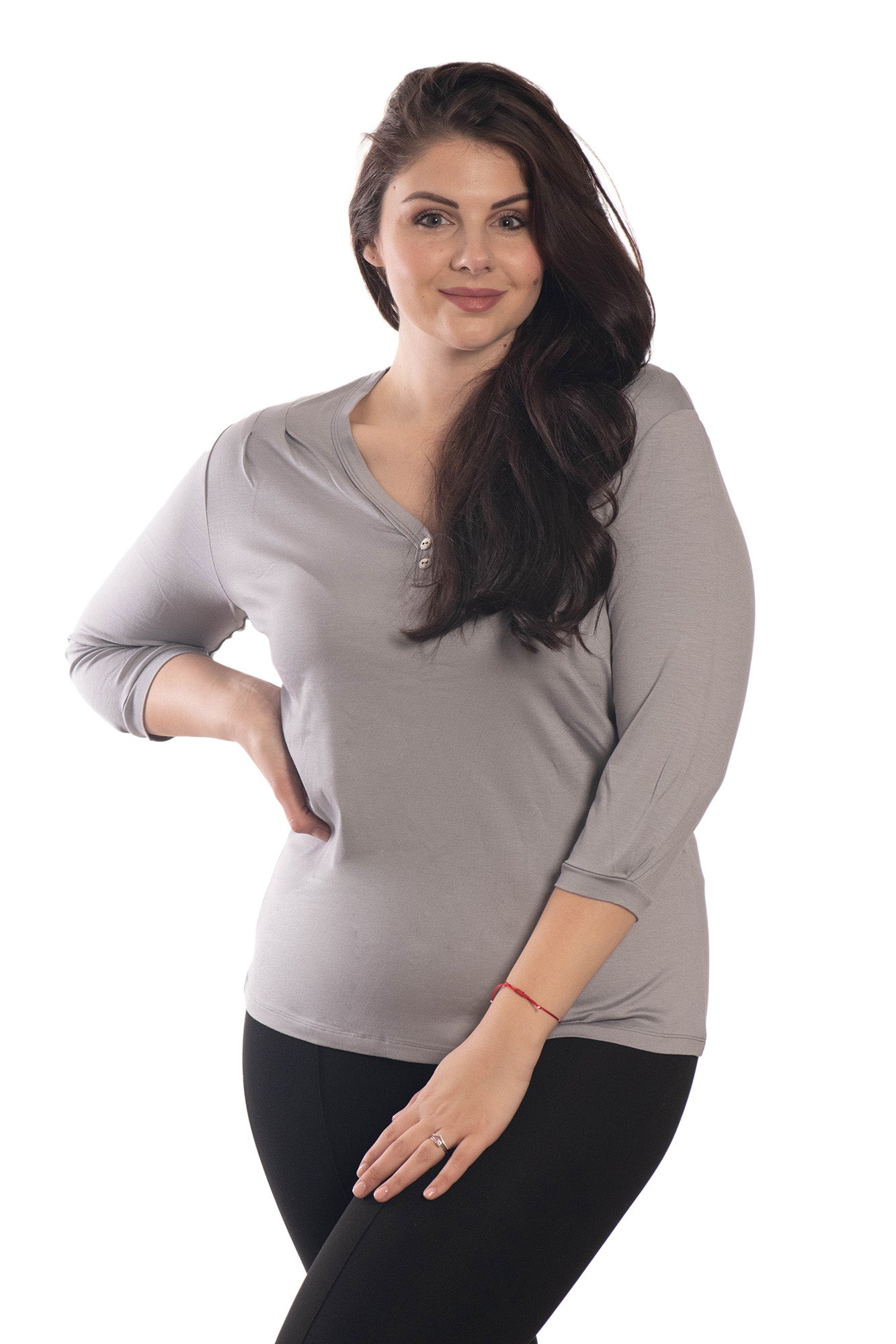 Дамска блуза - тениска с 3/4 ръкав остро деколте с две декоративни копчета за карасота