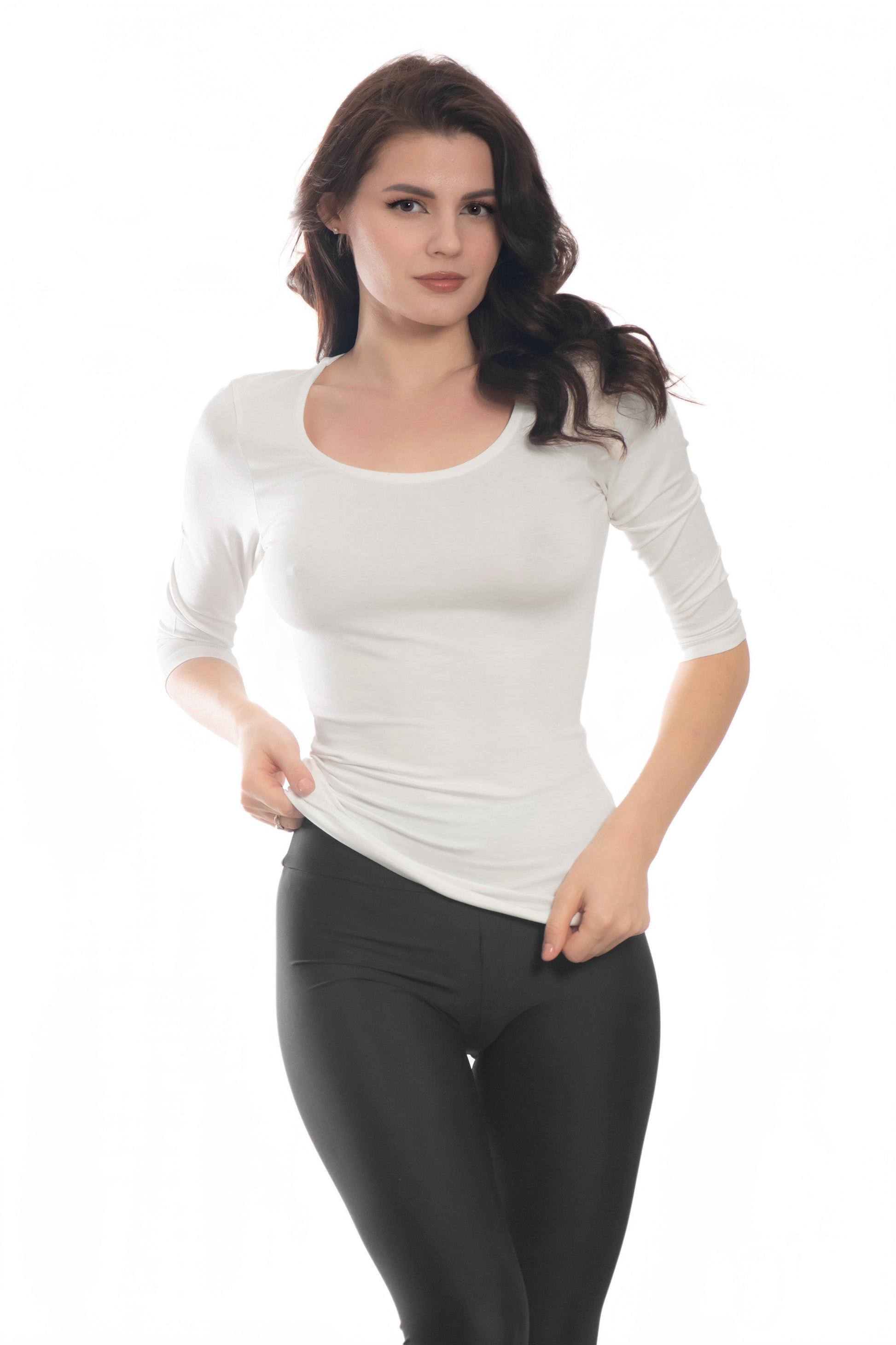 - Дамска тениска с 3/4 ръкав обло деколте добра основа за всякa визия.