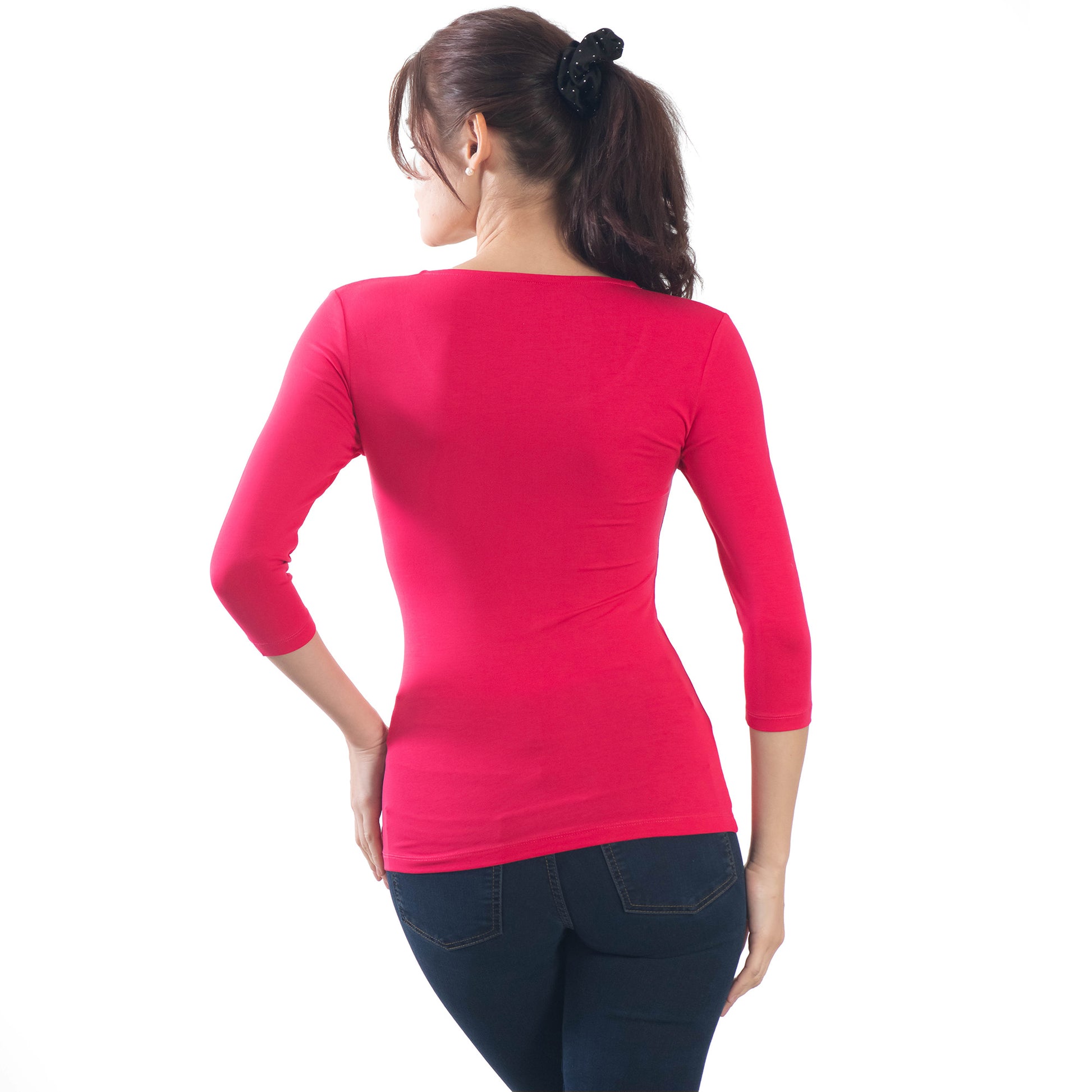 - Дамска тениска с 3/4 ръкав обло деколте добра основа за всякa визия.
