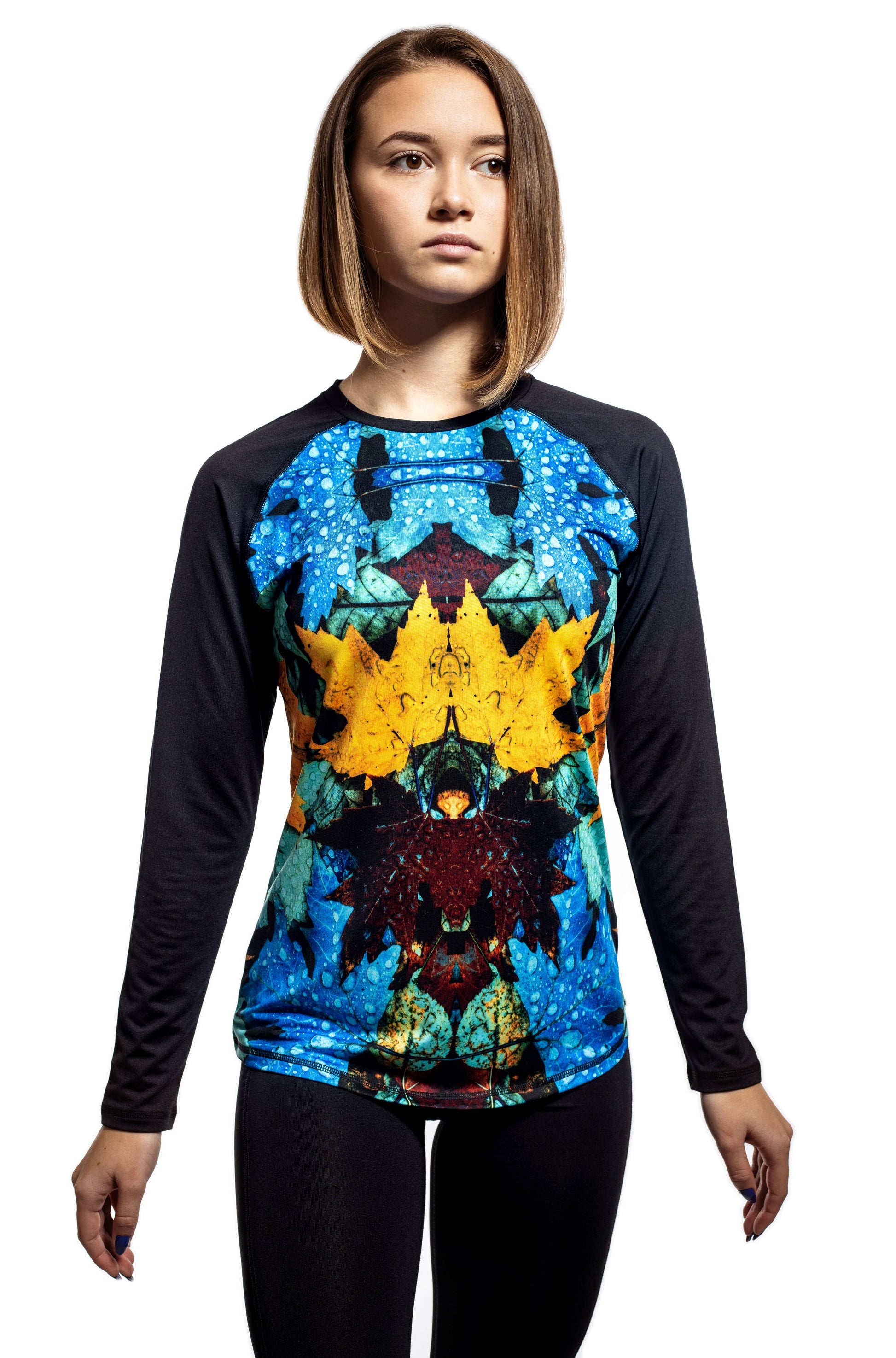 - Дамска тениска с дълъг реглан-ръкав обло деколте добра основа за всякa визия.