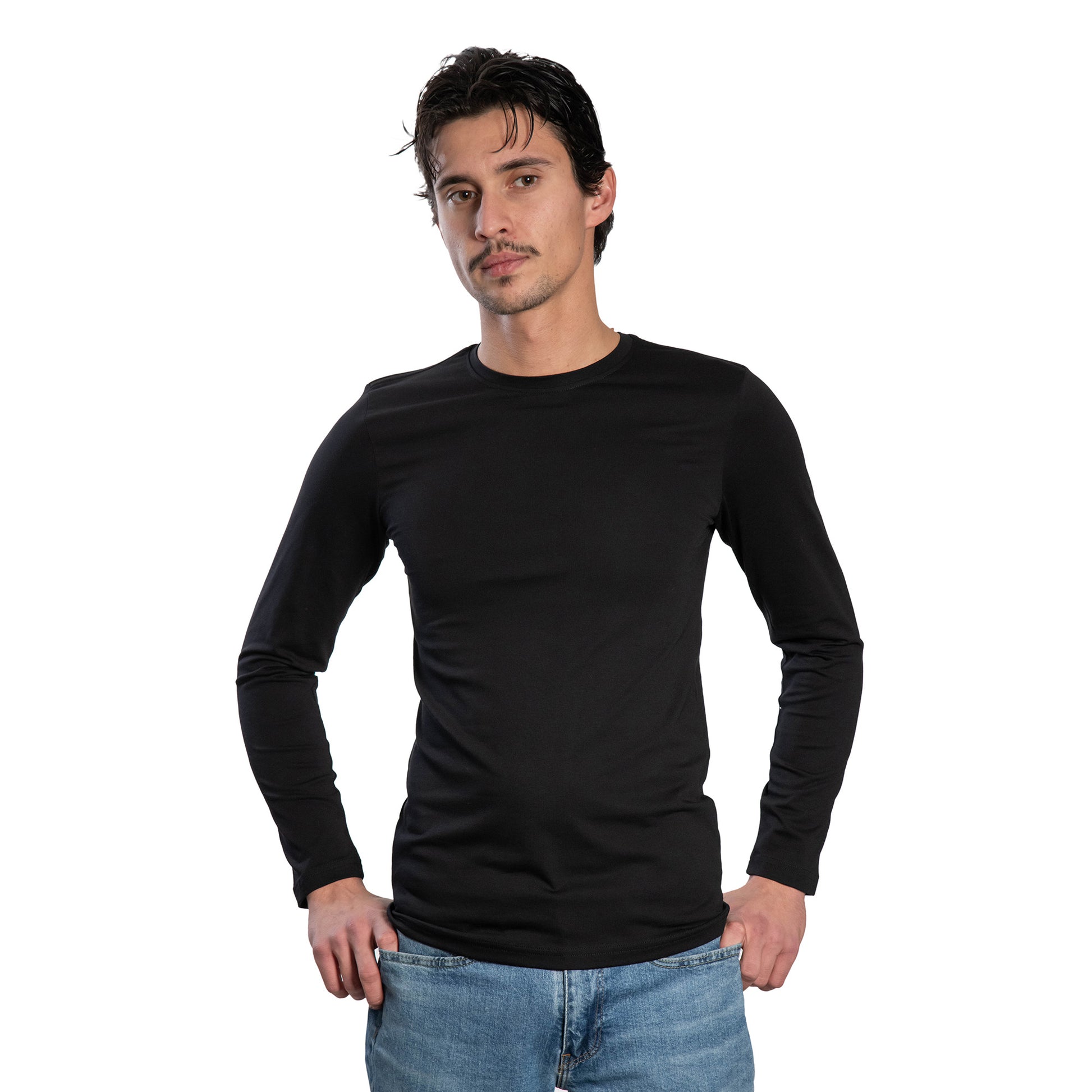 - Мъжка тениска с дълъг ръкав обло деколте добра основа за всякa визия.